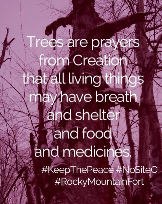 The Peace Valley is a Northern gem, it is prime agricultural land, it is a migratory corridor, it holds medicines and berries, it has sacred burial sites in it…..and wild onions. It is a part of Treaty 8 Territory and loved by Indigenous and Non-Indigenous alike and we do not ,and have not, wanted the Site C Hydro Dam flooding the Valley. There are already TWO dams on the Peace River. The river that was named that because the Dane Zaa and Cree made peace along that river.